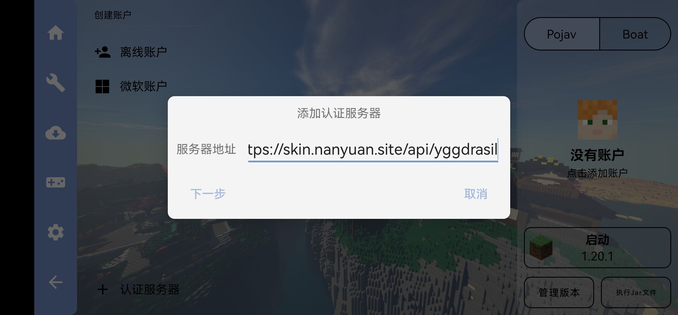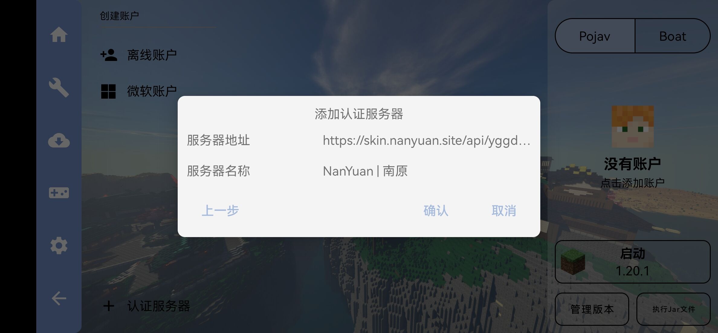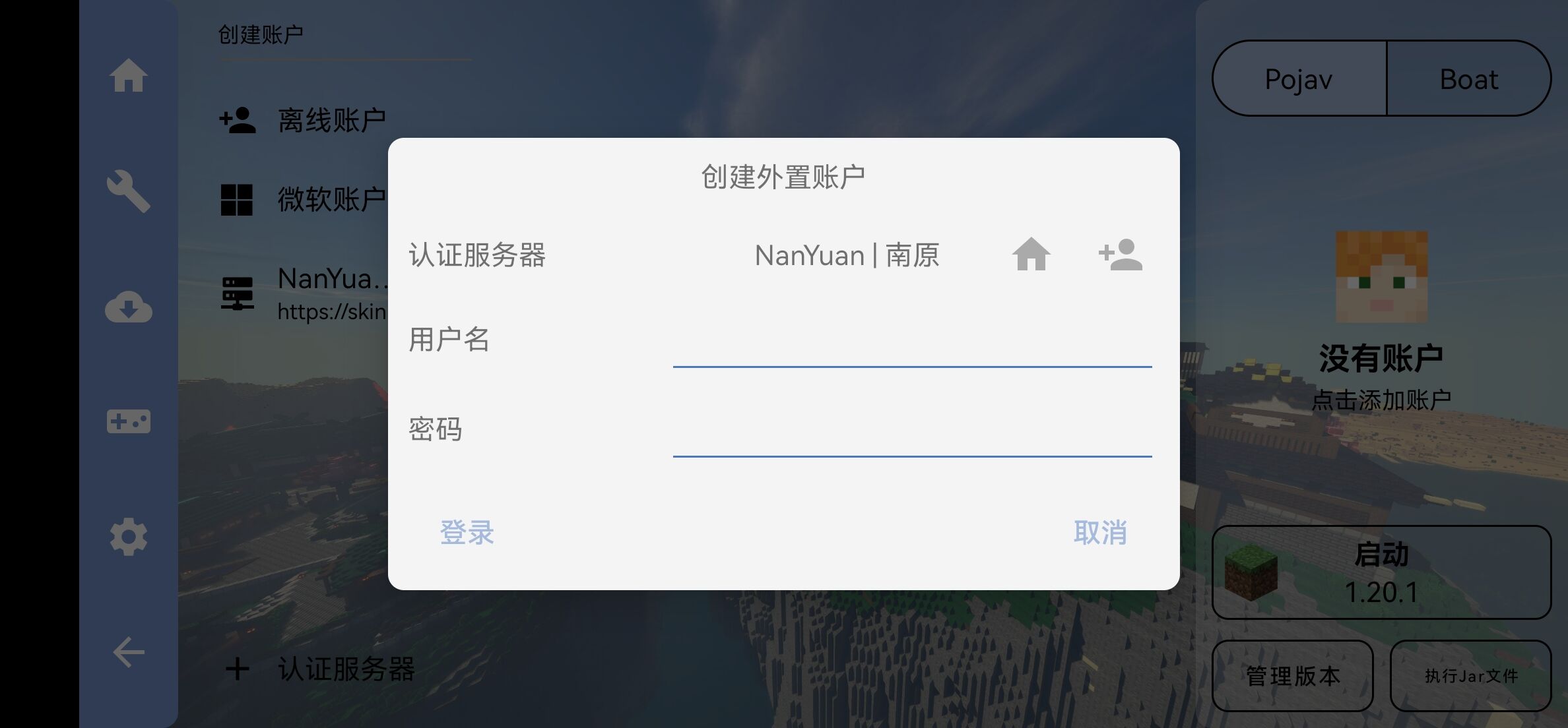 点击NanYua...,创建外置账户,如下图所示: