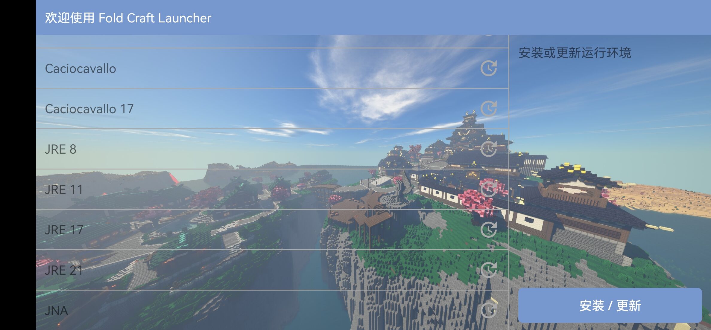 在 Android 上可以使用的官方/非官方启动器不是很多(大部分还都是基岩版),下文将以 FCL 为例。